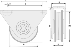 | CÓDIGO | D MM | D PLG | D1 | A | B | C | E | d1 | F | H | KG | # COJINETES |